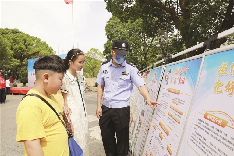 近日,嵊泗县禁毒办联合禁毒委成员单位在该县城岛沁公园开展“健康人生、绿色无毒”国际禁毒日宣传活动,现场,民警通过摆放仿真毒品模型、禁毒展板、张贴禁毒海报、发放禁毒宣传册等多种宣传形式,吸引过往群众驻足观看学习。
