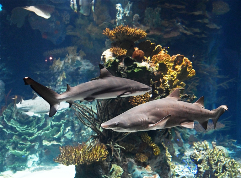 科威特科学中心5日举行新闻发布会,宣布成功繁殖了两条沙虎鲨幼鲨。沙虎鲨目前在世界自然保护联盟濒危物种红色名录上被列为“极危”物种。