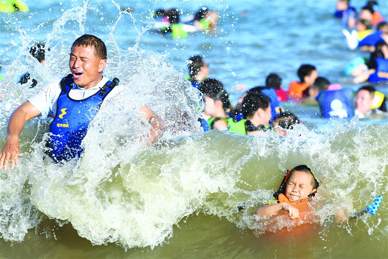 游客海中逐浪