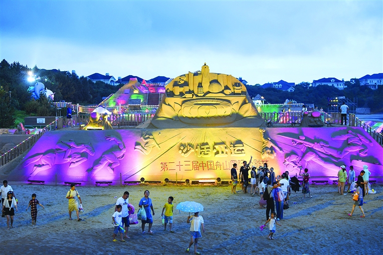 今年的舟山国际沙雕节围绕“沙话亚运”主题,通过沙雕艺术演绎亚运历史,传播亚运文化。在长200米、宽50米的沙雕区域内,60余件沙雕作品构成了喜迎“亚运时刻”的盛景。