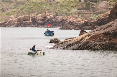 在嵊山岛,还有一些渔民喜欢驾着小渔船出海垂钓,“海水特别清澈时,用鱼线就能钓到虎头鱼。”Calvin见过嵊山渔民在长鱼线一端用鱼钩串起饵料,接着将鱼线一点一点垂落海中,耐心等待。一旦鱼线微微颤动,渔民便熟练地将其拉起,鱼钩那头,一条丑萌的虎头鱼不停晃动着,暗红色的鱼鳞在阳光下闪着眩目的流彩。