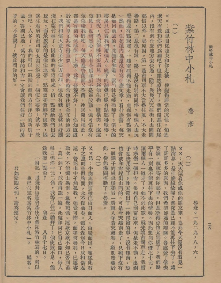 他们每天吃香菌,连掀开马桶盖时也能闻到香菌的味道,因此,鲁彦要宁波朋友(由于“小札”收信人不详,推测为史济行)送点钱来,带点鸡蛋和牛肉来。