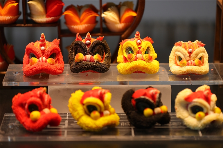 这是武杨制作的“醒狮酥”(7月14日摄)。今年35岁的武杨是一名中式油酥点心师傅,从业十年来致力于将面塑手艺融入传统中式酥点,并结合中国传统文化,设计制作出形色味兼备的新式酥点。