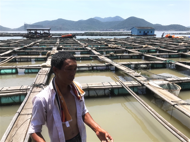 张正中从3000多公里外的云南大理来到舟山,踏上了海上网箱养殖的“漂泊之路”。在这片海上养殖场,今年48岁的张正中已经工作了5年多。