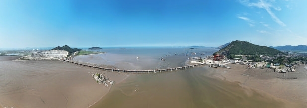 昨天,航拍器下的普陀区展茅螺门后门山至梁横山桥梁工程正在有序推进,自2月27日开工以来,经过5个月昼夜不间断的施工,目前桥梁全段下部结构已完成施工,完成总工程量的60%。据了解,该项目工程总投资15789万元,桥梁全长1090米,合同工期510日历天。建成后,将有力推动当地的经济建设和发展。摄影 记者 陈永建