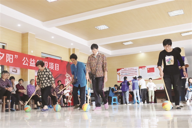 这场运动会是由李悦和她的13个小伙伴专门为老人们量身定制的,包括“纸杯传递”“水瓶快跑”“套圈”等项目,运动强度不大但趣味十足,老人们在运动中放松了身心,锻炼了身体。