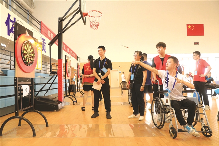 近年来,我市各级党委政府高度重视残疾人事业发展,各级残联也积极引导广大残疾人参与全民健身活动。目前,全市残疾人文化体育服务已实现全覆盖,文体活动参与率达到90.7%。2019年以来,我市实施残疾人康复体育进家庭,“全国特奥日”“残疾人健身周”、残健融合飞镖公开赛、旱地冰壶锦标赛等残疾人体育活动越来越丰富,残疾人朋友拼搏赶超,用实际行动践行自强不息的精神。2019年,定海区的陈磊在全国第十届残疾人运动会上获飞镖项目男子听力站姿组冠军。在刚刚举行的省第十一届残运会提前项目比赛中,舟山代表团已获2金1银4铜的好成绩。