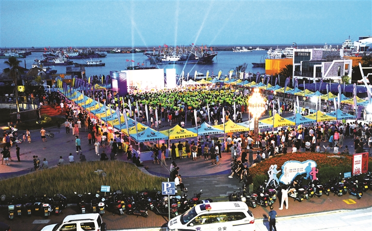 儿童滑步车比赛、高尔夫飞碟、公鸡下蛋、荧光跳绳……昨晚,嵊泗县望海广场,“让体育点亮生活——2022‘健康嵊泗·共富共美’全民健身嘉年华”举行。主办方共设置了8个新颖又好玩的运动体验项目。其中最受欢迎的荧光跑活动,吸引了500人参加。参与者挥舞着手中的荧光棒,沿着活动路线前行,成为当晚“最亮”的风景。