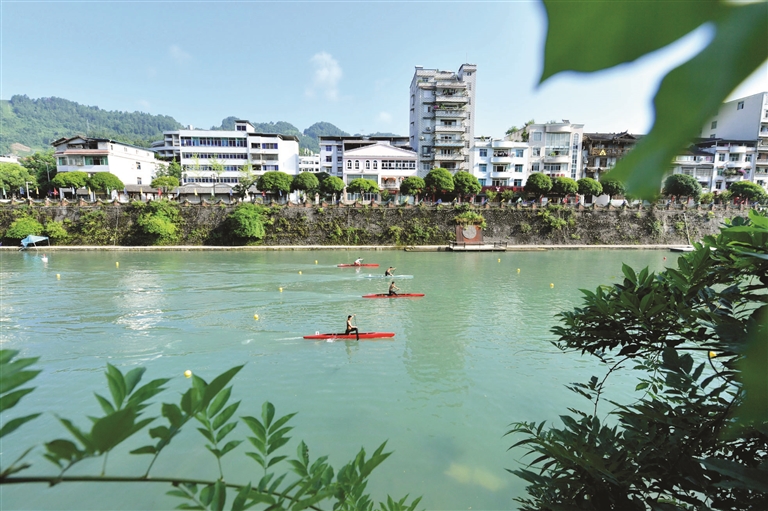 近年来,湖北省宣恩县积极依托山水资源,建立皮划艇、桨板、漂流、攀岩、绳降等体育运动基地,并引入体育赛事、团队集训等,将体育运动产业与乡村旅游相结合,促进乡村振兴。 新华社 发(宋文 摄)
