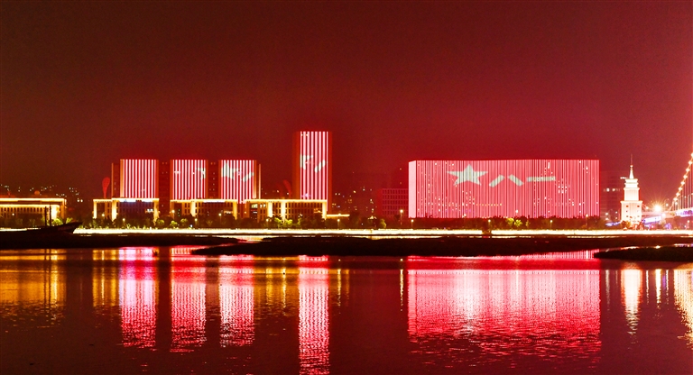 为庆祝中国人民解放军建军95周年,7月30日~8月1日每晚7:30~10:00,我市上演璀璨“八一”主题灯光秀,向广大现役军人、退役军人送上节日祝福。夜晚新城湾畔的楼宇,被酷炫的灯光渲染成红色的海洋,“庆祝中国人民解放军建军95周年”“尊崇军人、敬爱英雄、关心国防、热爱部队”等字样在城市夜空十分醒目,军旗等代表着军人元素的图案在楼宇中滚动展现,极富动感。摄影 记者 沈磊 周杭琪 通讯员 蒋琳