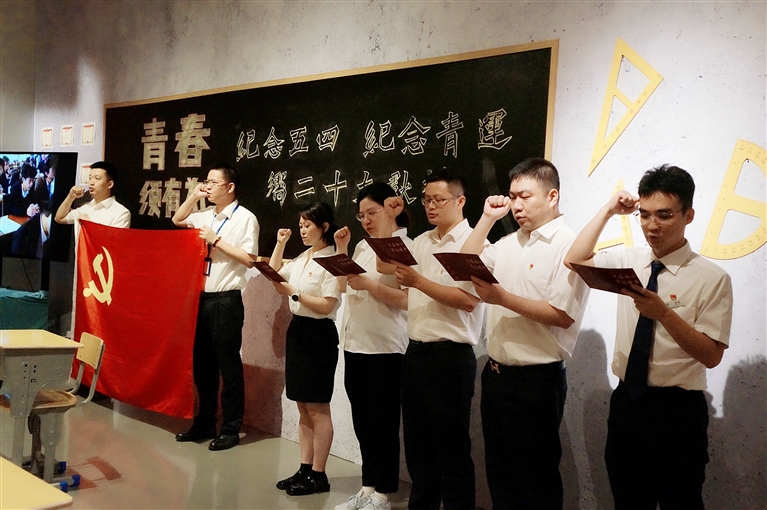近日,杭州银行舟山分行党员们在分行党委书记的带领下,于舟山博物馆开展了一次别样的生日庆祝活动。该行党委为每位党员准备了政治生日卡,重温入党誓词。新入党的5名同志还与参加活动的全体党员,对着党旗庄严宣誓:将充分发挥党员干部先锋模范作用,在党旗的指引下,不忘来时路,走好新征程。