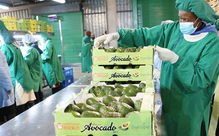 8月2日,在位于肯尼亚利穆鲁镇的桑瑞普工厂,员工将牛油果整理装箱。肯尼亚利穆鲁镇的桑瑞普工厂2日举行鲜食牛油果对华出口首发仪式。这批装满四个集装箱的牛油果当天完成打包装运,将销往北京、上海、广州等城市。这是非洲鲜食牛油果首次出口中国。 新华社记者 董江辉 摄