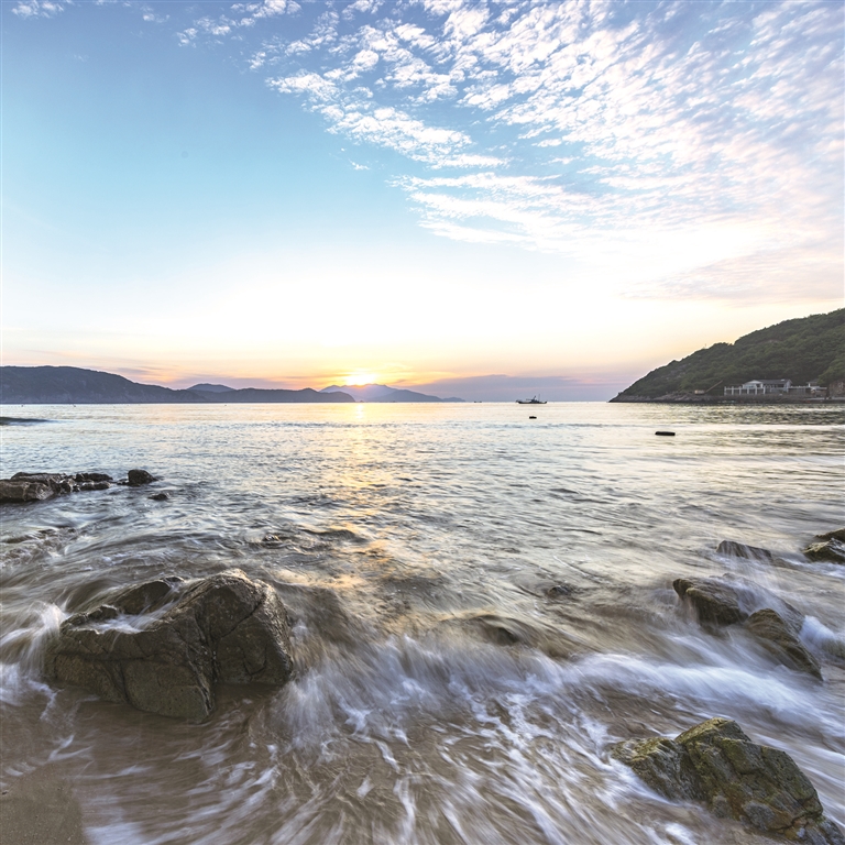 吃罢晚饭,就到了我最期待的“海塘坐风凉”时刻。外公打开手电筒在前面照路,偶尔还哼唱几段越剧,如《梁山伯与祝英台》《碧玉簪》,我紧紧地跟在外公身后,手里握住自制的小木剑,不敢东张西望,外婆走得慢,摇着一把蒲扇跟在最后面,时而响起的“啪啪”声,那是外婆在拍打蚊虫。我们三人排成一队,在蛙声虫鸣中,沿着小路晃晃悠悠地走向西岙海塘堤坝。