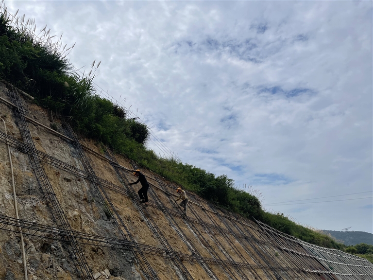 日前,在普陀区六横镇沙岙至涨起港公路施工现场,工人们化身“钢铁侠”,忙着给山体编织“铠甲”。这套“铠甲”叫主动网,由不锈钢丝绳编制而成,可有效阻挡山石坠落。据了解,今年以来,六横整治山体边坡等地质灾害隐患20余处,全力确保群众出行安全。