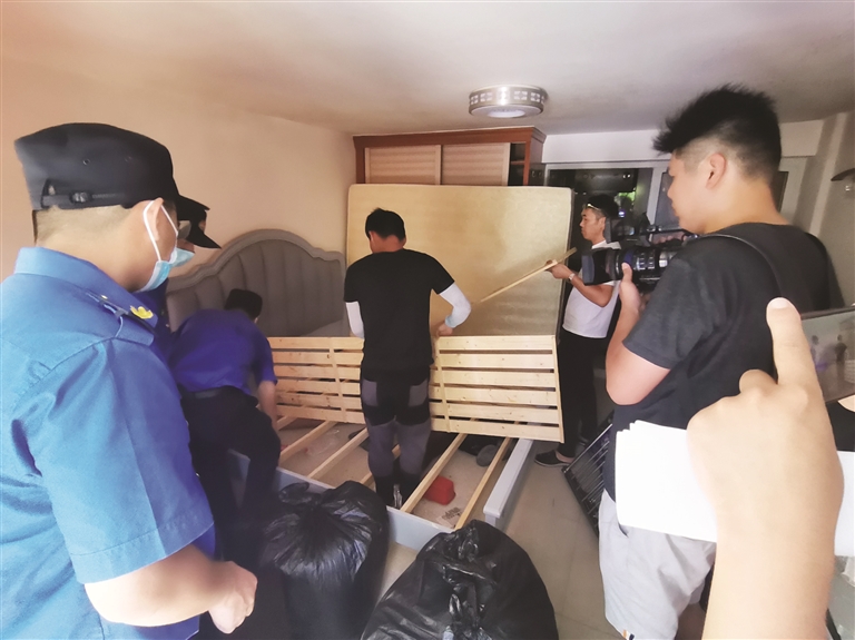 城管、街道、社区等随即启动专项整治,入户走访宣讲政策,并下发整改通知书。在前期工作中,已有2户完成自住备案、4户主动搬离。