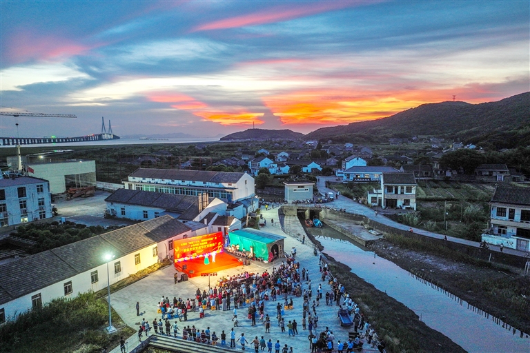 8月10日傍晚,余晖洒落令定海金塘大鹏岛格外美丽。当晚,一场以“喜迎二十大,强国复兴有我”为主题的群众文化艺术晚会在当地举行。14个精彩节目轮番上演,为岛上老年人献上了一场丰富的视听盛宴。