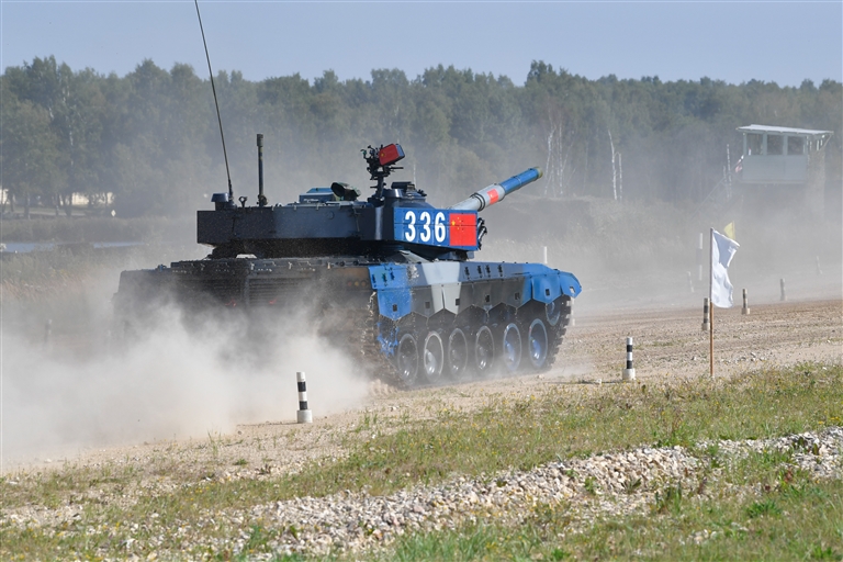 8月14日,在俄罗斯莫斯科州阿拉比诺靶场,编号336的中国参赛队96B坦克亮相赛场。
