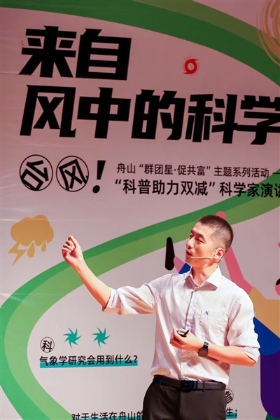 诙谐幽默的科普讲解是卞赟的风格。8月7日,受舟山市科学技术协会的邀请,卞赟来到舟山开展以“风中的科学”为主题的科普讲座,这是舟山市“群团星·促共富”主题系列活动之一。