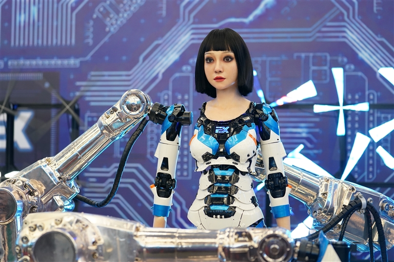 这是在2022世界机器人博览会上拍摄的一款人形机器人(8月18日摄)。