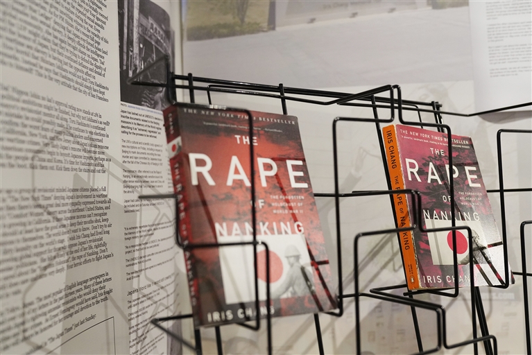 8月20日,在美国旧金山海外抗日战争纪念馆,《南京浩劫:被遗忘的大屠杀》摆放在阅览室内。