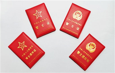图为《中国人民解放军军士证》《中国人民解放军军士退休证》《中国人民武装警察部队警士证》《中国人民武装警察部队警士退休证》证件封皮 新华社 发
