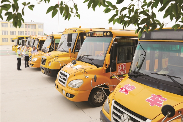新学期开学在即,安徽省淮北市开展校车安全专项大检查,组织交警和相关技术人员对辖区校车信息资料、校车司机驾驶资格、校车安全性能、防疫措施和随车配备的安全应急器材设备等逐一检查,消除校车安全隐患,确保学生乘车安全。