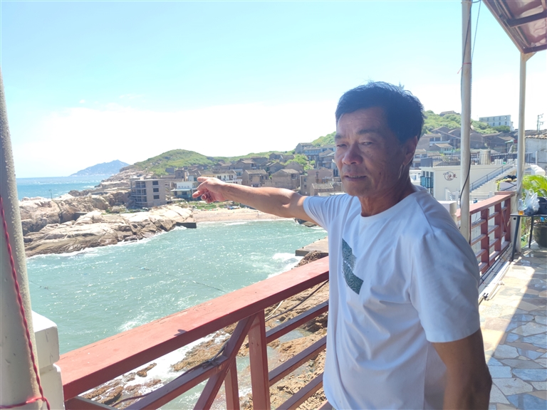 今年68岁的郑贤昌当了很多年船老大,2016年上岸开起了民宿。在他的民宿里,有一个特别的装饰,那就是三面锦旗。这既是他英勇救人的见证,也是东极渔民勇敢善良精神的传承。