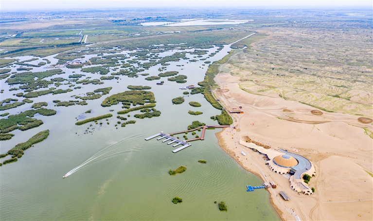 初秋时节,位于宁夏银川市以北42公里处的石嘴山市平罗县境内的沙湖景区处处呈现沙水相依、碧波万顷的美丽画卷。据悉,沙湖景区总面积80.1平方公里,其中湖泊面积45平方公里,沙漠面积22.5平方公里。 新华社记者 杨植森 摄
