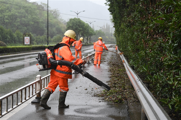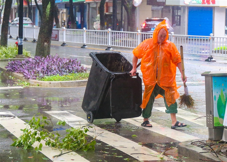 昨天,定海昌国路,环卫工人清理树枝等垃圾 摄影 记者 张磊 通讯员 潘彬彬