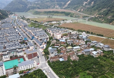 这张拍摄于9月6日的照片显示石棉县王岗坪乡部分老旧房屋倒塌(无人机照片) 新华社记者 胥冰洁 摄