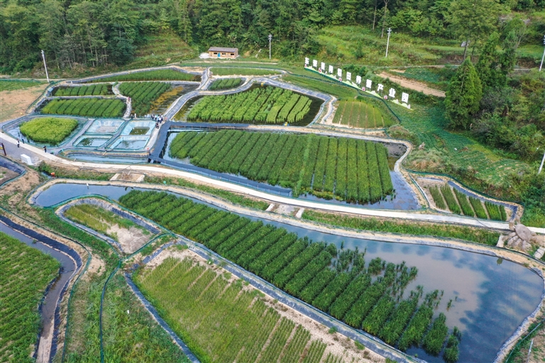 这是9月6日拍摄的重庆市酉阳县黑水镇大涵村“稻田养蟹产业园”(无人机照片)。