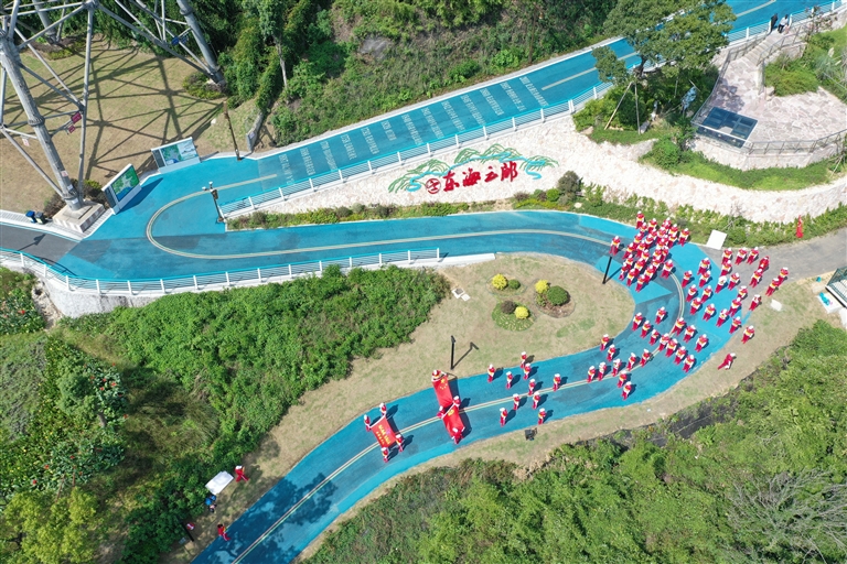 9月11日,舟山市户外运动协会云廊健步俱乐部的100余名户外运动爱好者,迈着整齐的步伐行走在东海云廊竹山段等地,通过健身欢度中秋。