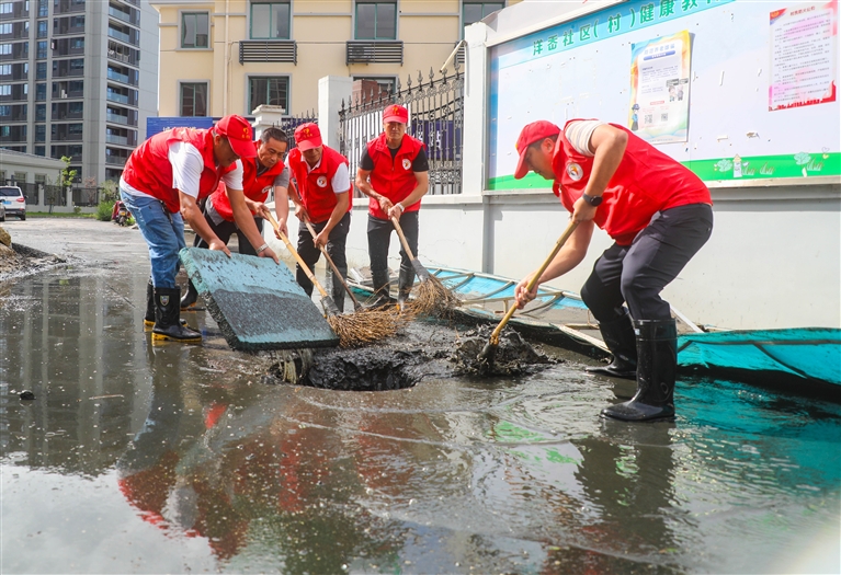 志愿者们来到各社区,开展排涝清淤、消杀防疫、路面清障、秩序维护等工作,帮助受影响的群众迅速恢复生产生活秩序。