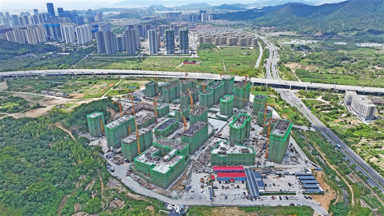近日,记者来到位于东西快速路新城段北侧的新城城北安置房项目工地。现场塔吊林立,一片热火朝天的建设场景。据了解,该项目总建筑面积28.6万平方米,将提供1643套住宅。 摄影 记者 陈永建