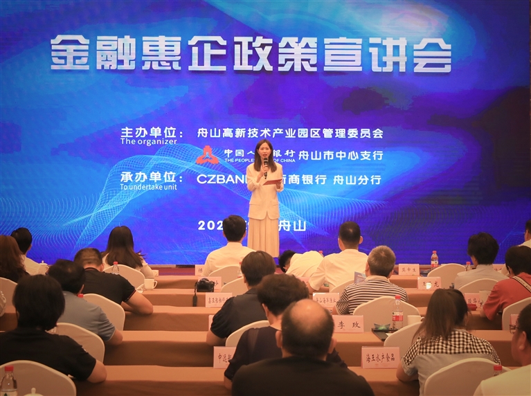 近日,浙商银行舟山分行承办了由人行舟山市中支、舟山高新技术产业园管委会联合主办的金融惠企政策宣讲会,进一步深化政银企合作,切实优化涉外营商环境,提升服务涉外企业水平。全市60余家油品贸易、船舶修造、水产品加工行业企业参与了此次活动。