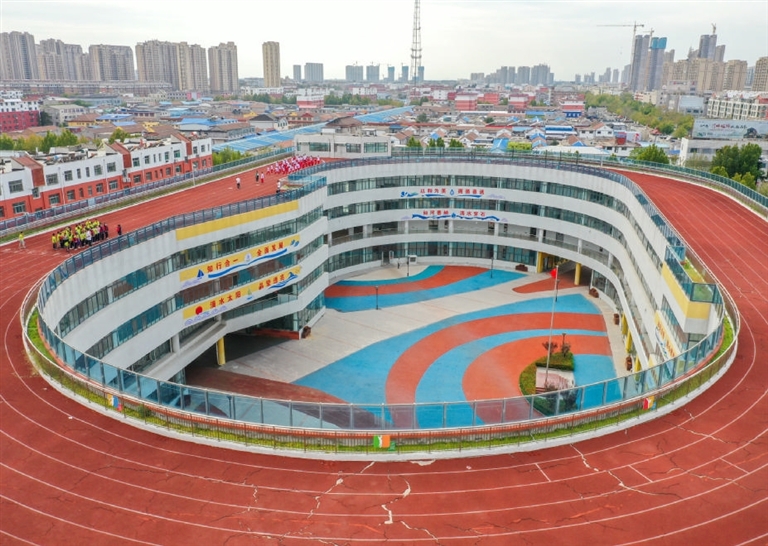 近年来,山东省德州市齐河县在老校区改造建设中创新节地模式,通过立体空间综合开发,因地制宜建起空中运动场,不仅改善了办学条件和校容校貌,也为学生锻炼提供了舒适安全的活动场所。