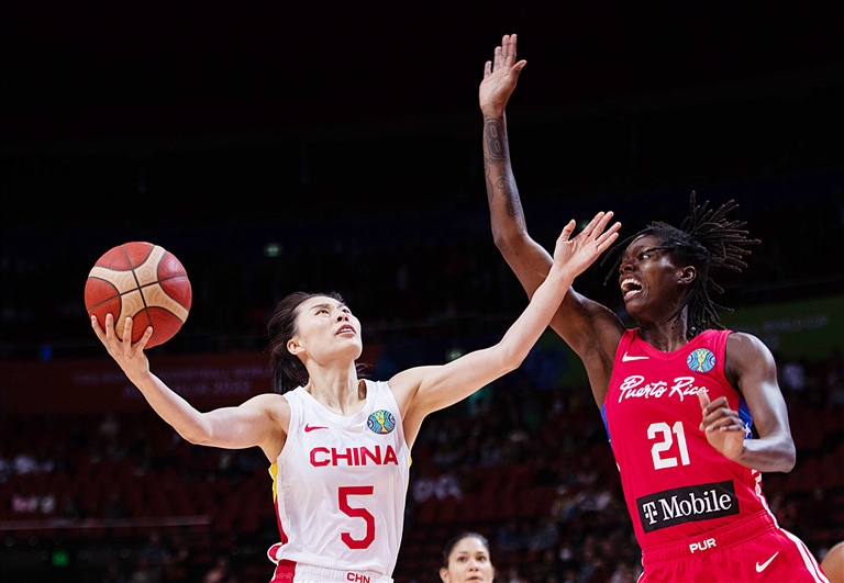 当日,在澳大利亚悉尼进行的2022女篮世界杯A组比赛中,中国队以95比60战胜波多黎各队,提前一轮晋级八强。 新华社 发(胡泾辰 摄)