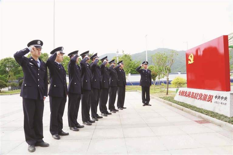 罗家岙派出所全体民警在张立镇的领誓下重温入党誓词