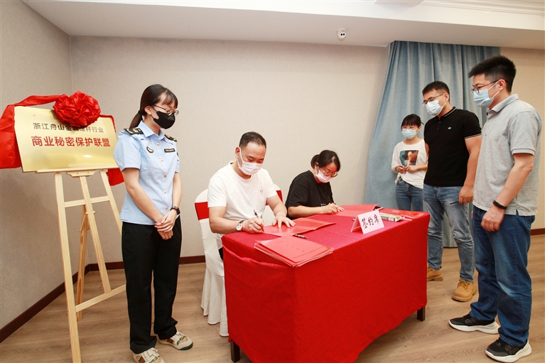 本报讯 9月28日,金塘螺杆行业商业秘密保护联盟成立。该联盟由金塘民营企业发展联合会倡议发起,金塘22家螺杆企业共同成立,加盟企业负责人当场签署了《浙江舟山金塘螺杆行业商业秘密保护联盟公约》(见图)。