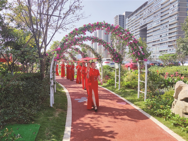 红色的旗袍洋溢着喜庆的气息,摇曳的身姿夺人眼球。昨天上午,普陀玲珑旗袍队的阿姨们也来到全新的普陀婚姻登记中心拍摄“大片”(见图),摄影大爷陆志杰扛着长枪短炮,指挥着阿姨们摆姿势,好不忙碌。