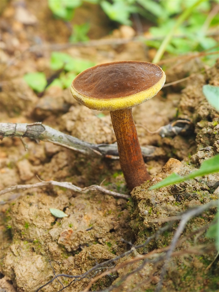 人与自然和谐共生,在青山绿水间记录美好。一年前的10月份,生物多样性调查专家团队走进普陀武岭湿地公园进行水生生物本底调查。同月,专家团队在悬山岛一处简易公路边坡发现了个体极小的牛肝菌子实体,相比其他条孢牛肝菌,其子实体和担孢子较小,菌盖表面幼嫩时棕黑色,成熟后棕色至暗棕色;菌柄棕黄色,生有密集的棕褐色鳞片;子实层体表面黄色,菌肉白色至黄白色,两者受伤后均变蓝。这一发现让大家欣喜万分。