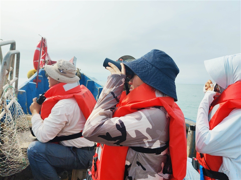 调查人员在东极镇进行鸟类野外调查 市生态环境局普陀分局供图