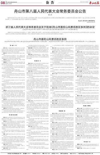 舟山市第八届人民代表大会常务委员会公告