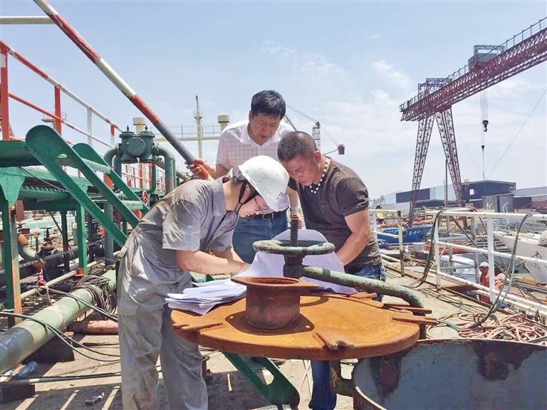 2019年党员先锋队开展“三服务”,高温下开展现场验船工作