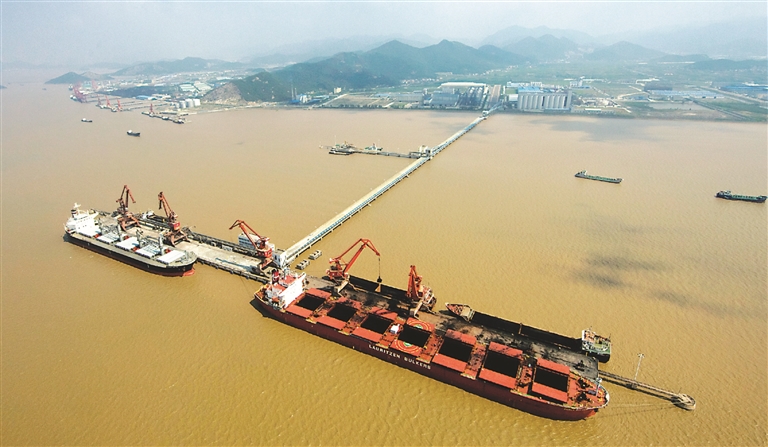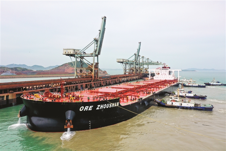 2021年7月11日,32万载重吨“矿石舟山”轮首靠马迹山码头
