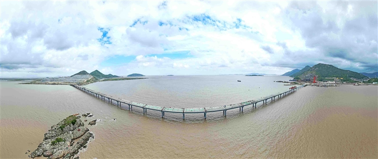 普陀区展茅街道螺门后门山至梁横山桥梁工程,已完成总工程量的85%,计划于本月底实现贯通。该工程总投资约1.58亿元,桥梁全长1090米。 摄影 记者 陈永建