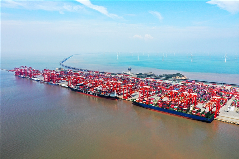 这是2022年9月23日拍摄的上海洋山港集装箱码头(无人机照片) 新华社记者 丁汀 摄