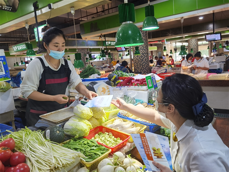 近日,温州银行舟山新城小微支行来到绿岛菜场开展现金大篷车活动,向个体商户普及金融知识,并提供便捷便利的零币兑换等金融服务。