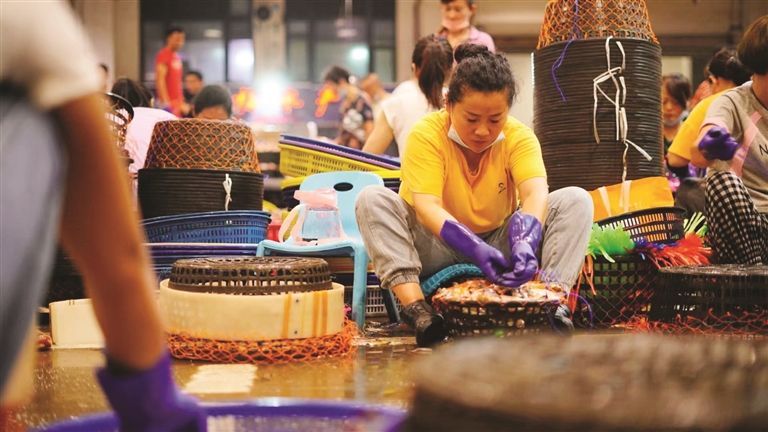 视频中展现的舟山海鲜加工场景