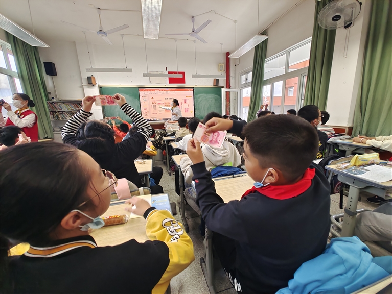 课堂上,温州银行的工作人员用生动的PPT、宣传材料,配合展示互动、趣味问答等介绍了货币基础知识,教会孩子如何识别人民币、爱护人民币,帮助尽早树立正确的消费观和价值观,将理财意识“种”进心里。同时还进行情景模拟,提高大家的防诈反诈意识。